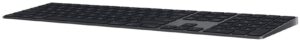 - El Magic Keyboard con teclado numérico tiene un diseño ampliado, con controles de navegación para que te desplaces rápidamente por tus documentos y teclas de flecha de tamaño estándar para jugar.