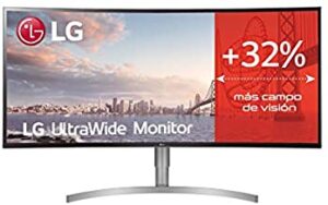 LG 38WK95C-W - Monitor Profesional Curvo UltraWide WQHD+ de 95 cm (38") con Panel IPS (3840 x 1600, 21:9, 300 cd/m², sRGB 99%, 1000:1, 5 ms GtG, 75 Hz, DPx1, HDMIx2, USB-Cx1, USB-Ax2), Blanco y Plata